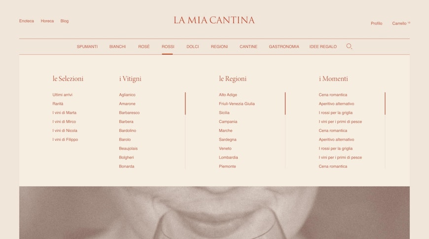 Un retail fisico dove la conoscenza del mondo del vino dei consulenti La mia Cantina fa la differenza. Una caratteristica distintiva dell'esperienza d'uso dei clienti che si è cercato di replicare nelle pagine del sito, valorizzando le figure del team e le loro specifiche visioni.