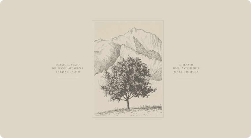 L’intero impianto narrativo si sviluppa da qui: un prodotto che cresce tra le quote più alte d’Europa e una cultura che ha sempre dialogato oltre la frontiera. Questo approccio prende forma subito nella comunicazione del sito attraverso head e subhead. Un racconto che stabilisce il tono del brand e guida l’intera identità, mettendo al centro il territorio, la cultura alpina e la specificità delle sue varietà autoctone.
