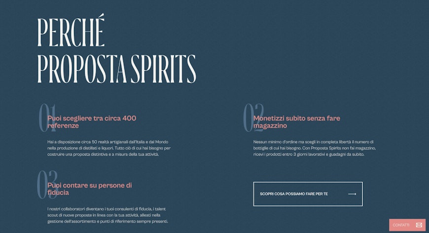 Proposta Spirits ha acquisito una riconoscibilità distintiva nel mondo della distribuzione di distillati, entrando in pochi mesi tra gli attori più rilevanti nel settore. Il progetto ha valorizzato l’investimento fatto precedentemente su Proposta Vini, dimostrando come un approccio modulare e scalabile possa generare valore concreto, visibile e misurabile anche per un marchio emergente.