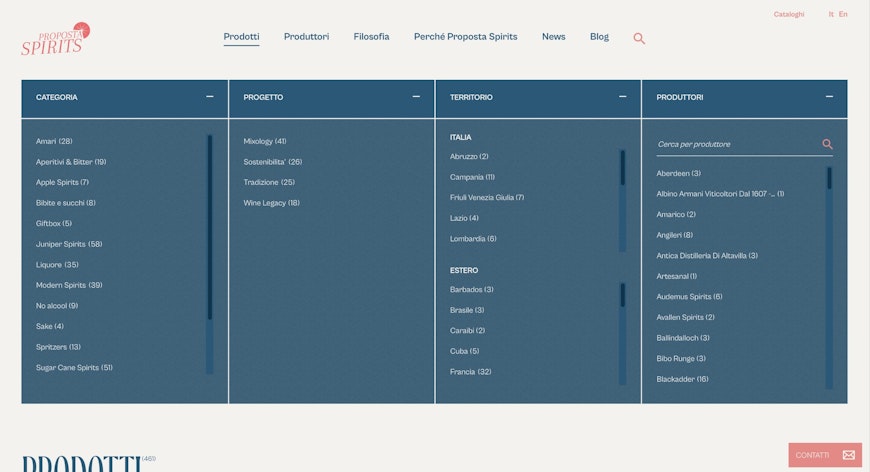 Per Proposta Spirits abbiamo realizzato una piattaforma web basata su architettura Jamstack e su un ecosistema di tecnologie headless e distribuite, in grado di garantire alte prestazioni, flessibilità e scalabilità.