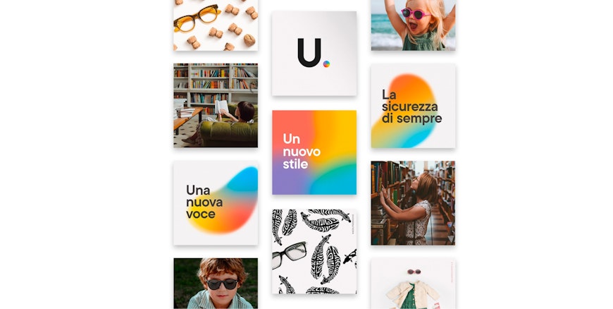 Ciascun puntino delle lettere i del naming è studiato per rappresentare i colori che identificano le quattro linee dell’offerta di occhiali Utilissimi: lettura, luce blu, sole e bambini. Una scelta distintiva che si presta, attraverso la fusione dei quattro puntini, a diventare anche rappresentazione complessiva del marchio. Un unico cerchio iridato, utilizzabile nella versione monogramma del logo.